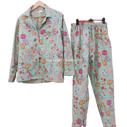 Conjunto de pijama de algodón con estampado Floral, ropa de dormir de 100% algodón orgánico, verde, para la noche, venta al por mayor