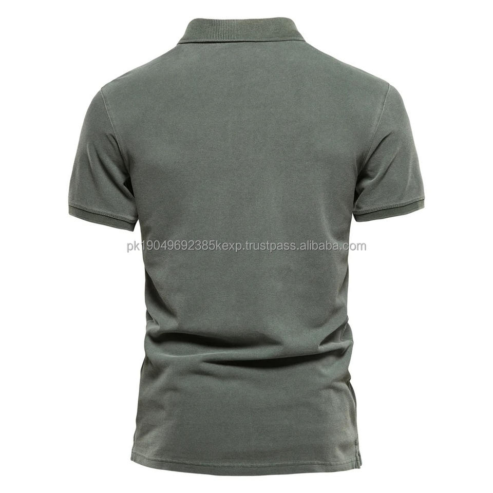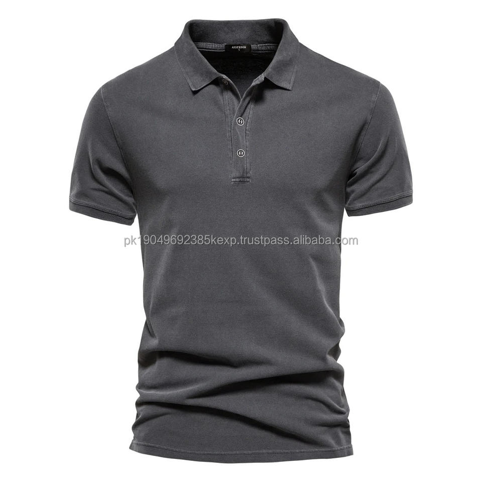 Camisas de Hombre de Color Sólido de Algodón/Poliéster, Camisetas Casuales de Manga Corta de Punto de Secado Rápido con Cuello Camisero, Ropa de Calle de Moda