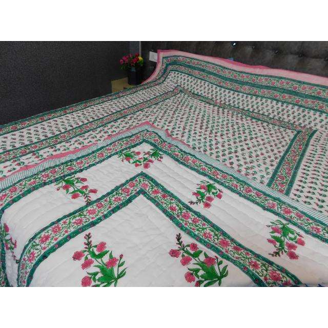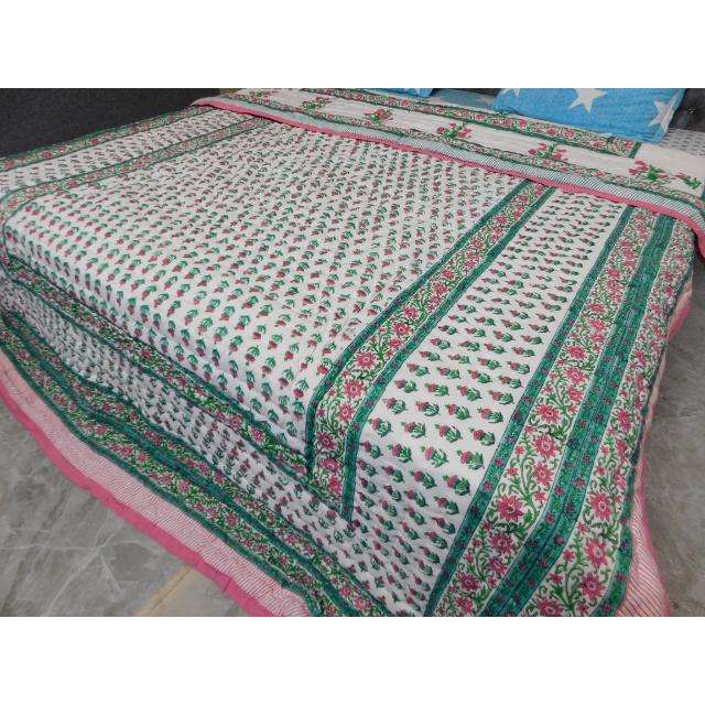 Edredón de Algodón de Lujo Rajai Jaipuri Sanganeri, Hecho a Mano con Estampado de Bloques, Ecológico, Reversible, Manta Cálida de Invierno para el Hogar y Hoteles
