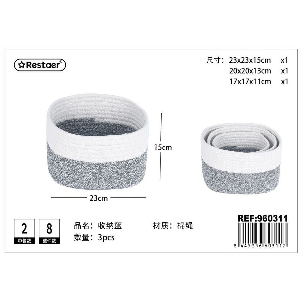 Cesta de almacenamiento de cuerda de algodón Paquete de 3 23*23*15cm-Almacenamiento en el hogar