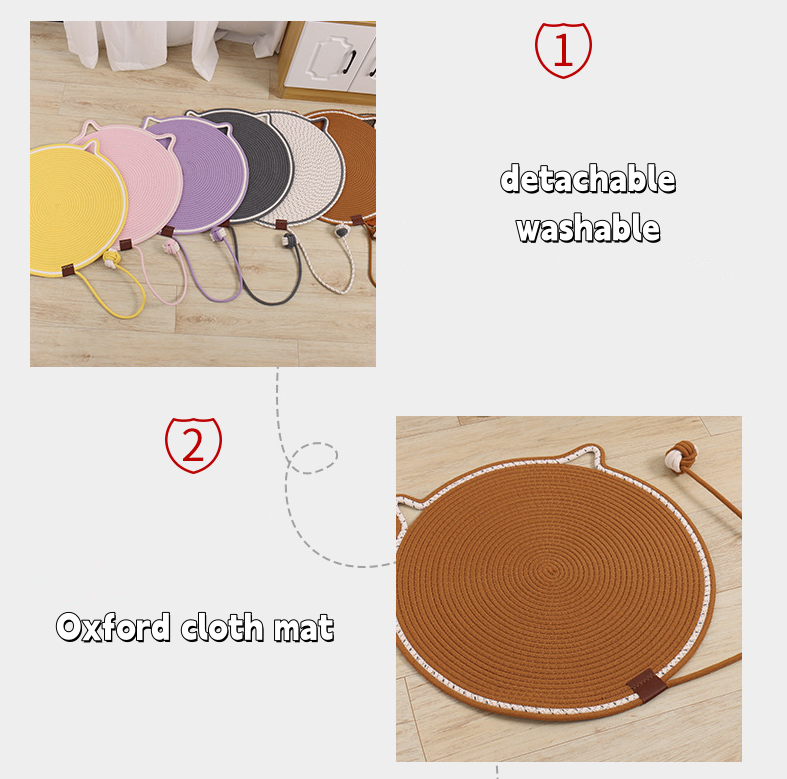 Alfombra de Descanso para Gatos de Cuerda de Algodón, Resistente al Desgaste, Lavable, Transpirable, Duradera, con Diseño de Dibujos Animados, Alfombra de Juego y Descanso para Mascotas, Rascador para Gatos