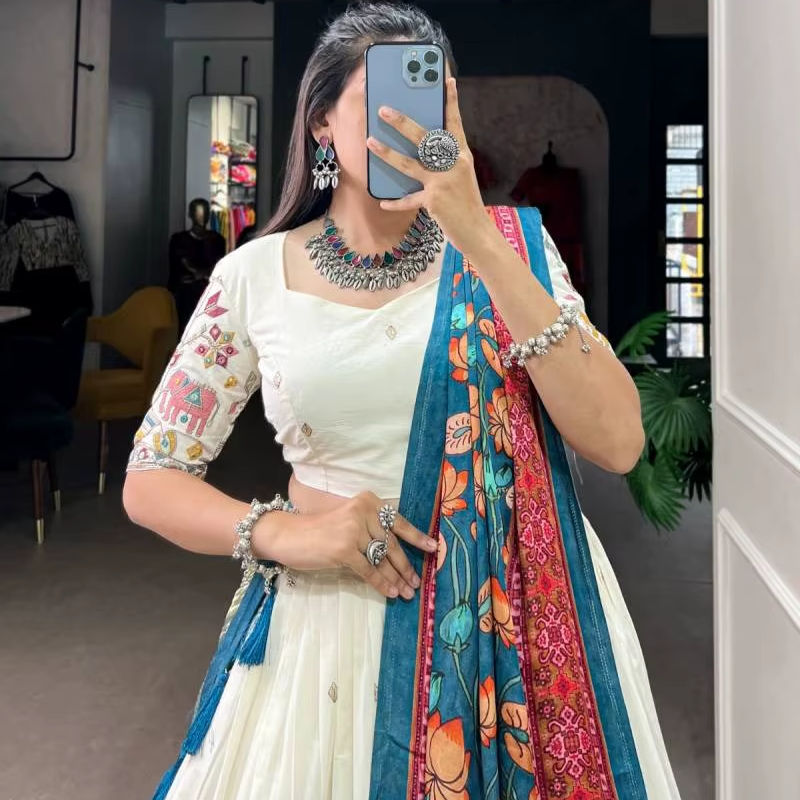 Tejido Lehenga (cosido):Khadi algodón