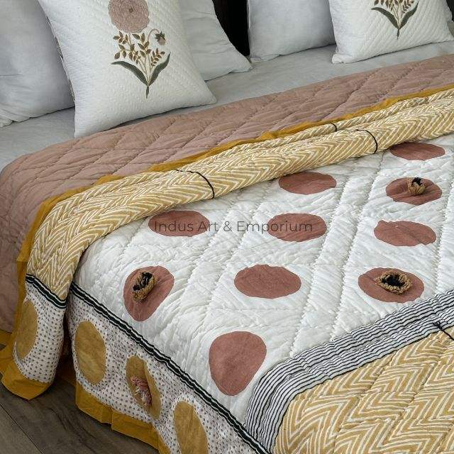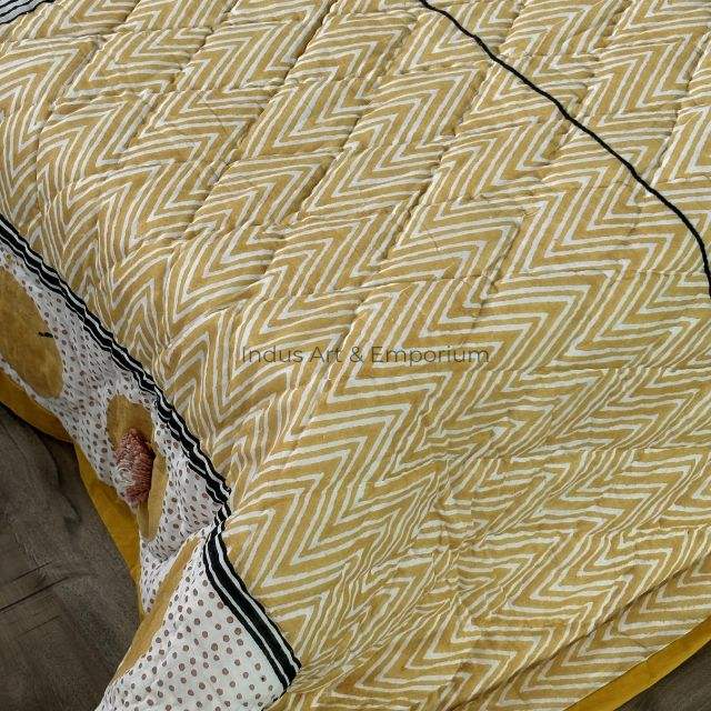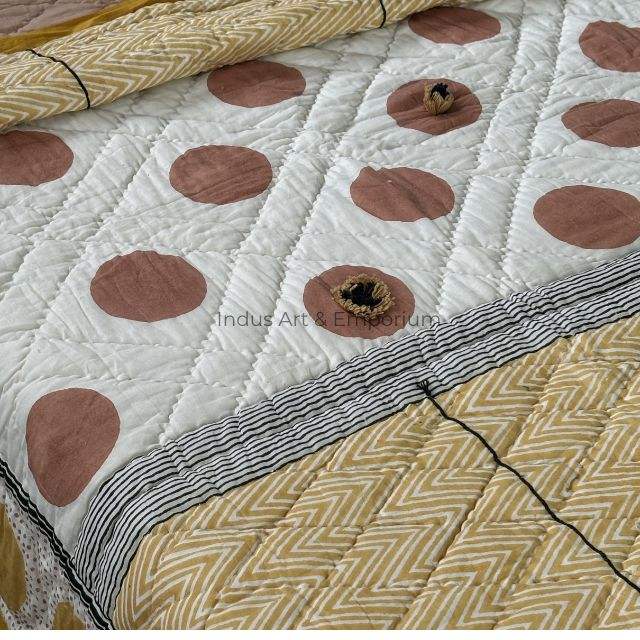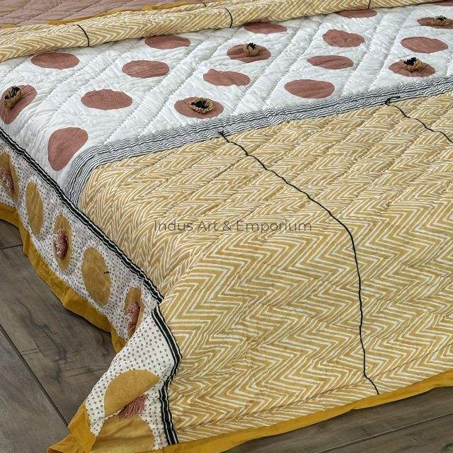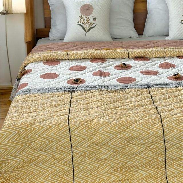 Algodón suave impreso mano bloque estampado Boho Jaipuri Rajai doble colcha edredón