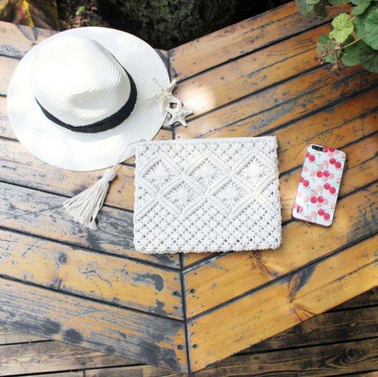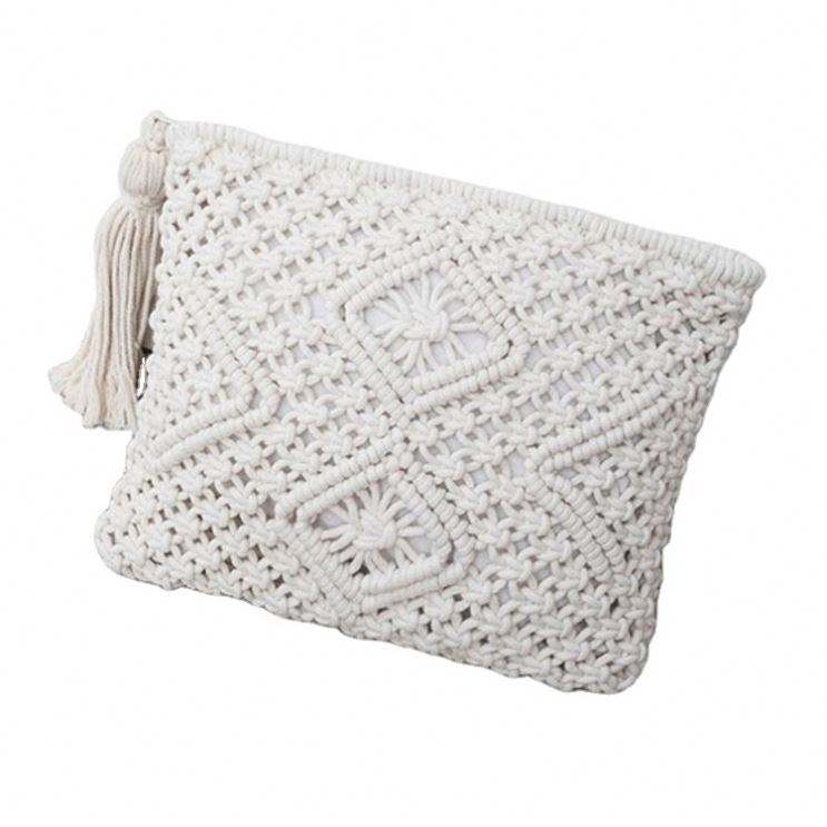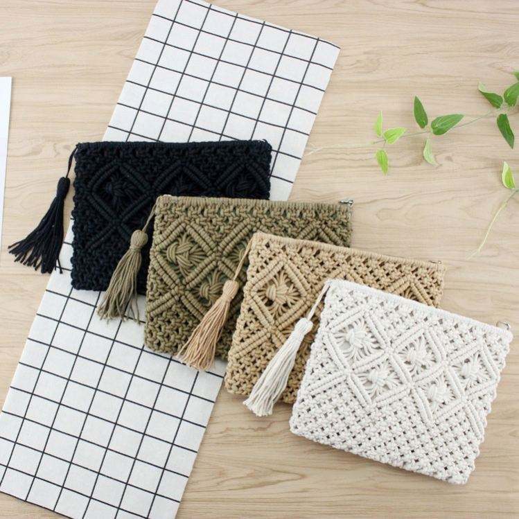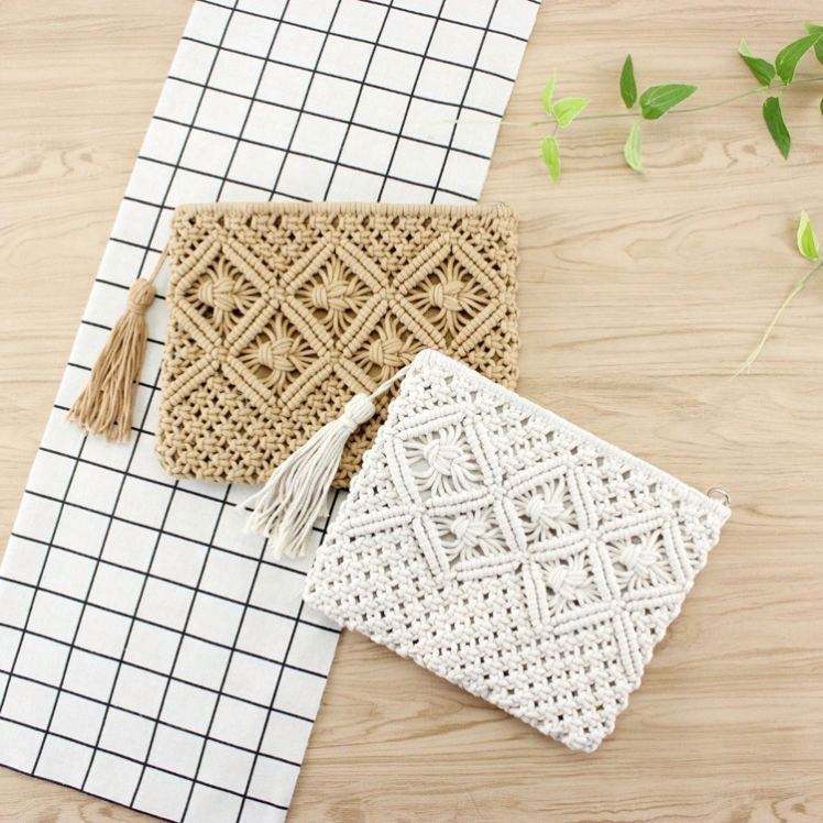 Bolso de Mano de Ganchillo Hecho a Mano con Hilo de Algodón y Borlas