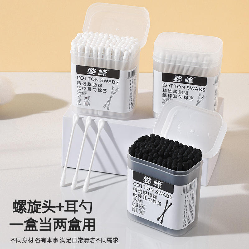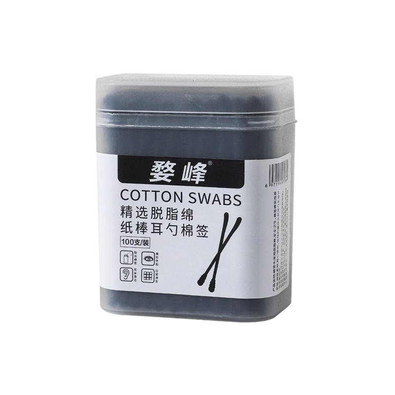 Hisopos de algodón de doble punta para limpieza de oídos y eliminación de puntos negros, desechables, de color sólido, 100 unidades por caja