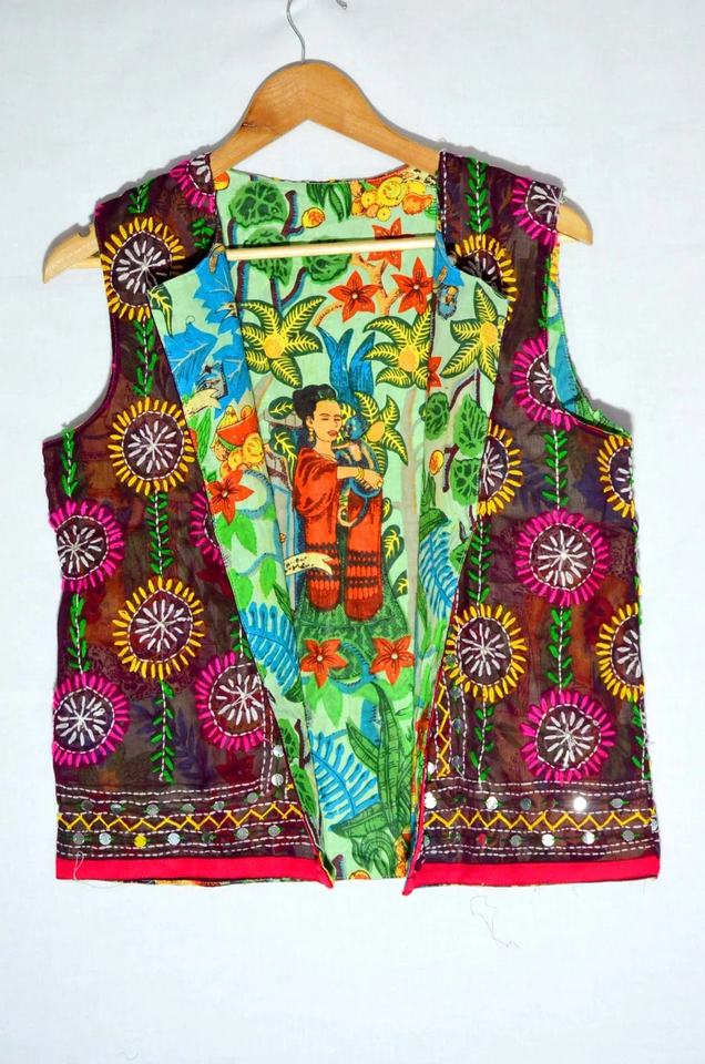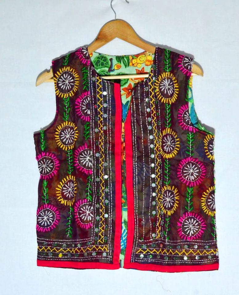 Chaleco de algodón Phulkari Chaleco bordado Abrigo Chaqueta con estampado floral
