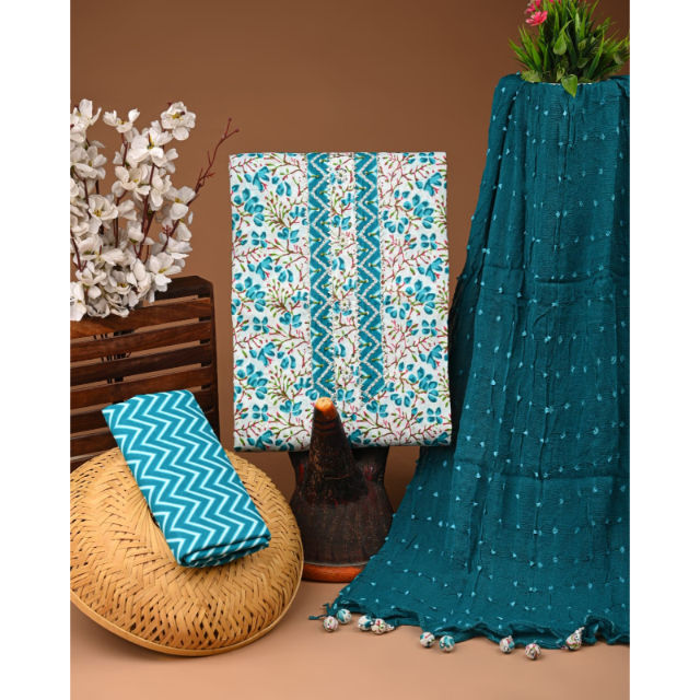 Cotton Suit pure chiffon dupatta with zari gotapatTipo de ropa
