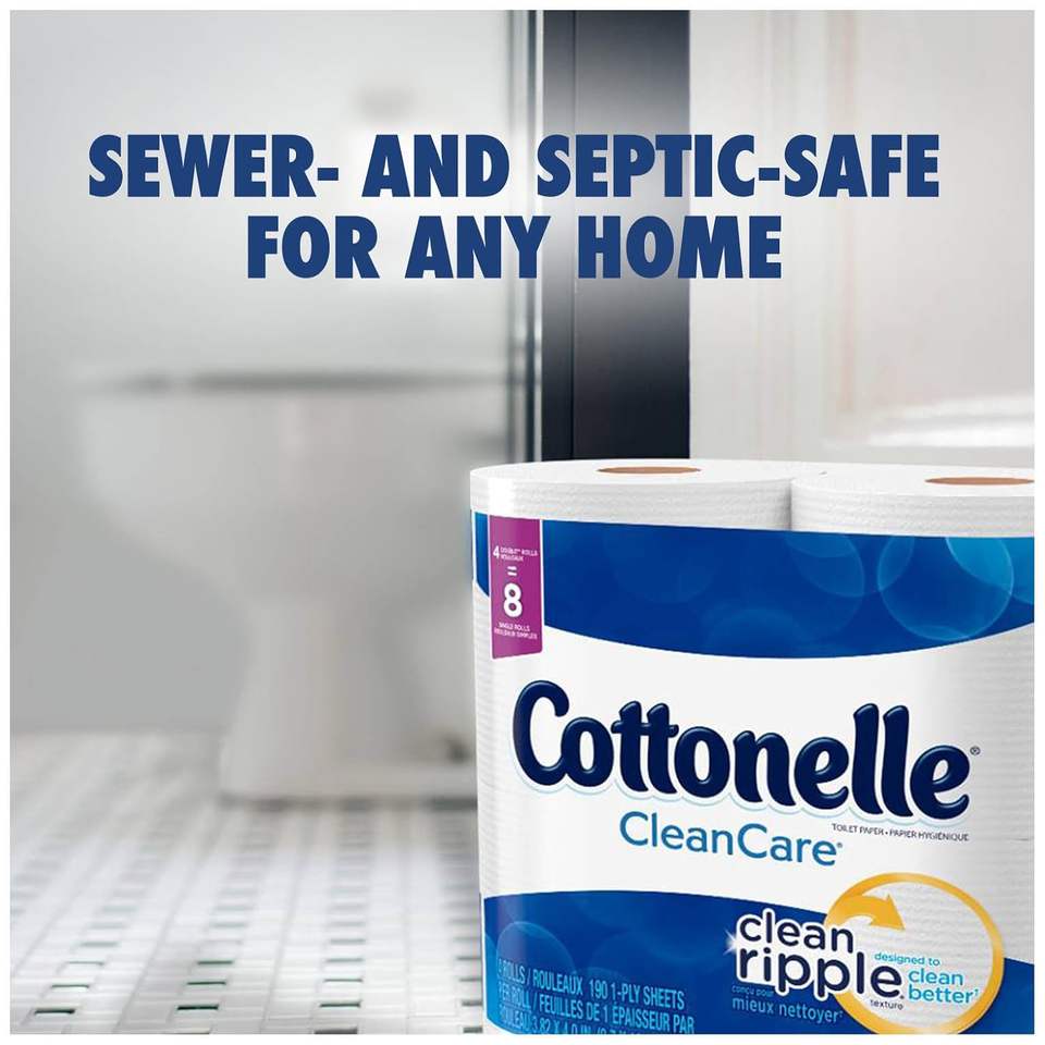 Papel Higiénico Cottonelle CleanCare en Rollo Grande (Paquete de 12 Rollos), Papel Higiénico Ultra Suave con Líneas Limpias