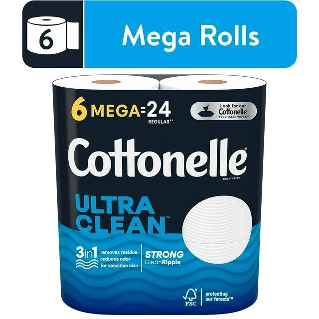 Cottonelle Ultra CleanCare Papel higiénico húmedo 6 Mega Rollos 340 Hojas Hecho con pulpa de bambú de algodón 2.040 Hojas totales