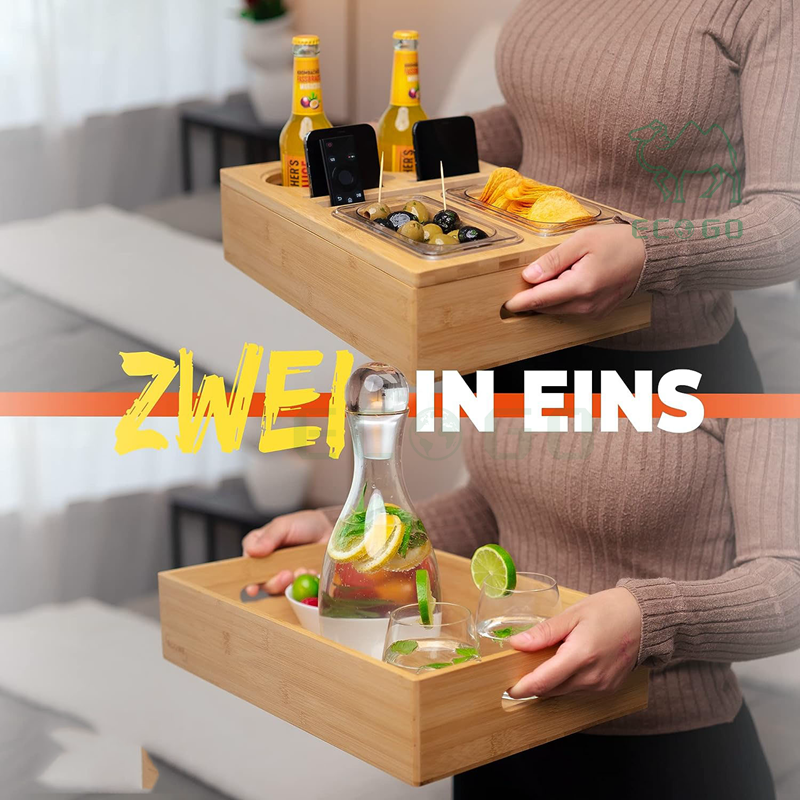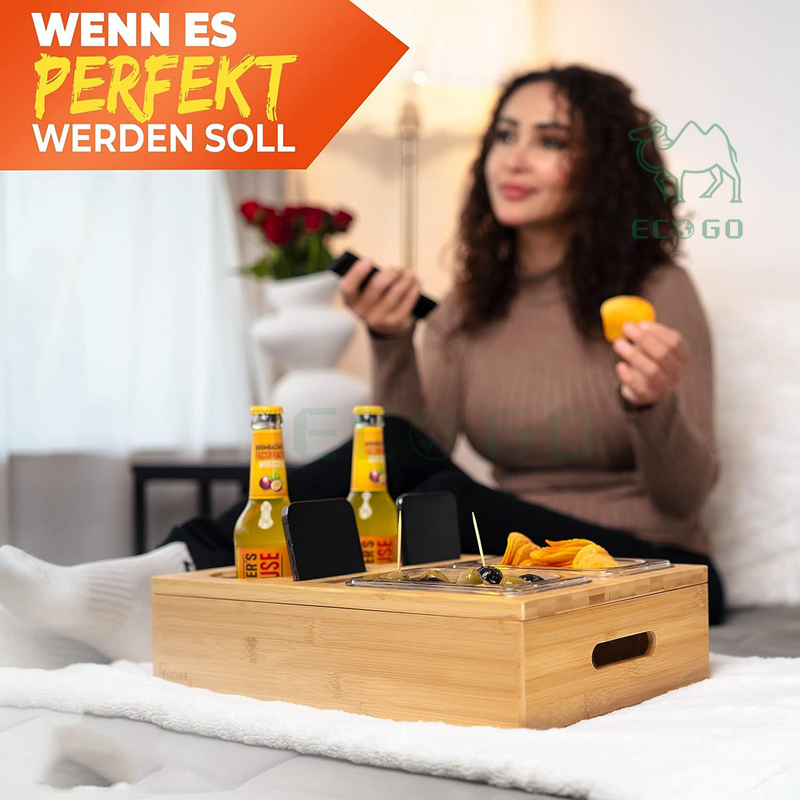 Couchbar Organizador con soporte para bebidas con 2 cuencos para aperitivos Soporte para teléfono móvil y tapa extraíble