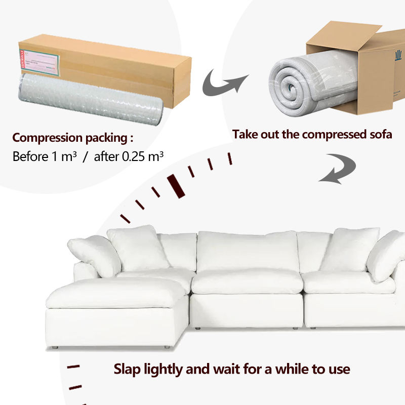 Juego de sofás modulares seccionales con compresión plegable, muebles embalados al vacío, sofá comprimido para sala de estar en caja
