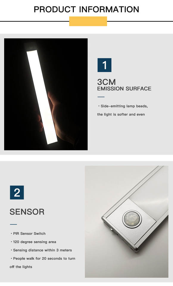 Barra magnética inalámbrica con sensor de movimiento, luz LED nocturna para escaleras, armario de cocina, debajo del armario