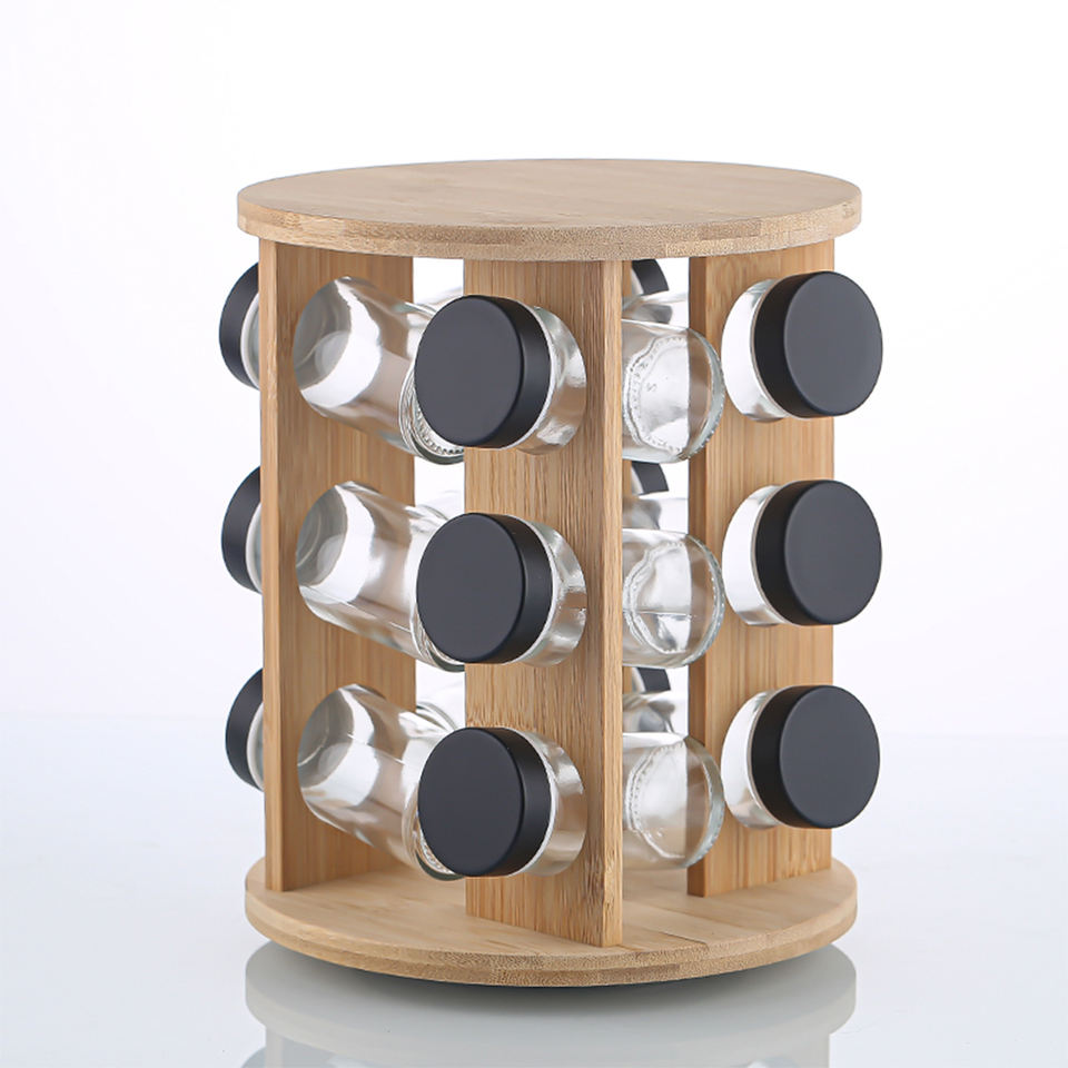 Estante de pie para encimera, estante giratorio de madera para almacenamiento de botellas de 20 tarros, juego de estante giratorio para especias para cocina casera