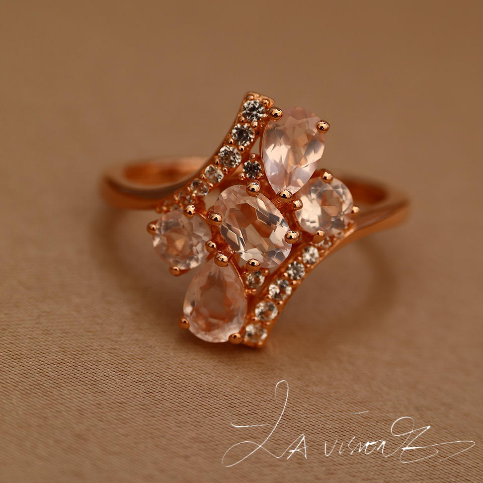 Anillo de la Serie Counterattack con Incrustaciones de Jade, Cuarzo Rosa Natural y Zafiro Blanco Sintético, Joyería Vintage