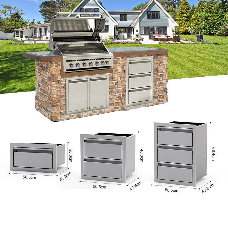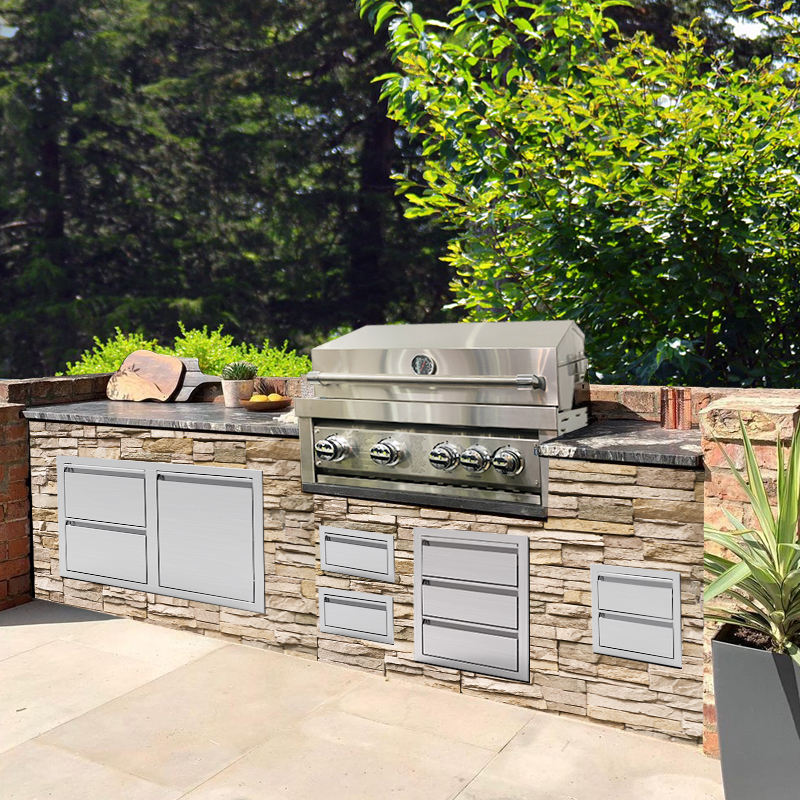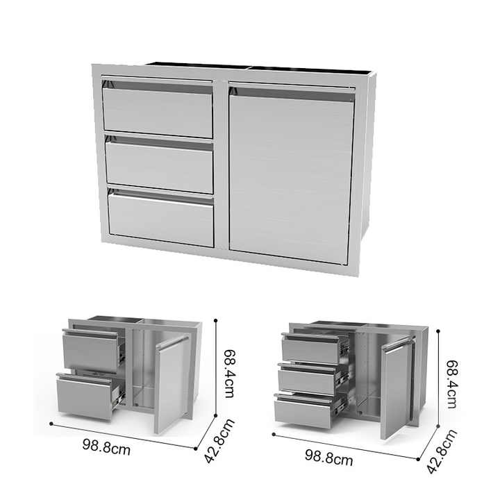 Mueble de Cocina Modular de Acero Inoxidable para Interiores y Exteriores con Cajones y Puerta para Zona de Aficionados al Fútbol