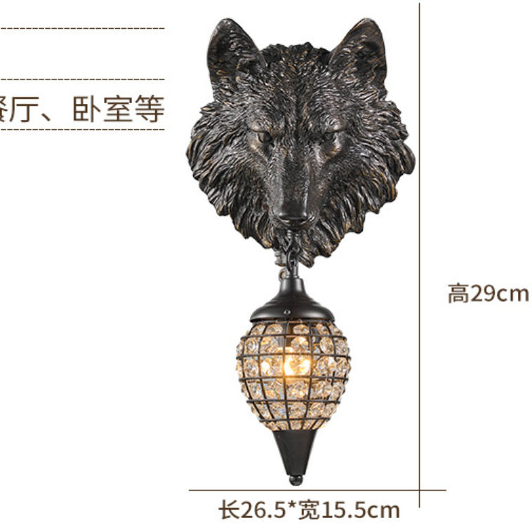 Country Retro Wall Light Bar Cafe Golden Wolf Head Hold Lantern Inn Resina Decorado Tema Restaurante Wolf Lámpara de pared
