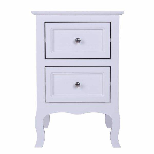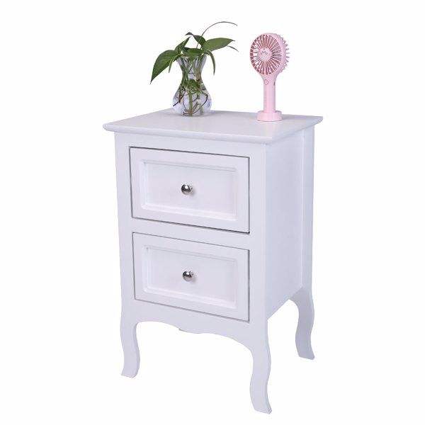 Mesita de Noche Grande de Dos Niveles Estilo Rústico en Color Blanco