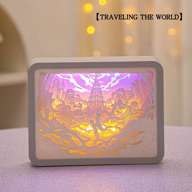 Pareja estado de ánimo luz de noche creativa LED 3D lámpara de escultura de papel arte decorativo lámpara de mesa con marco cuadrado para dormitorio