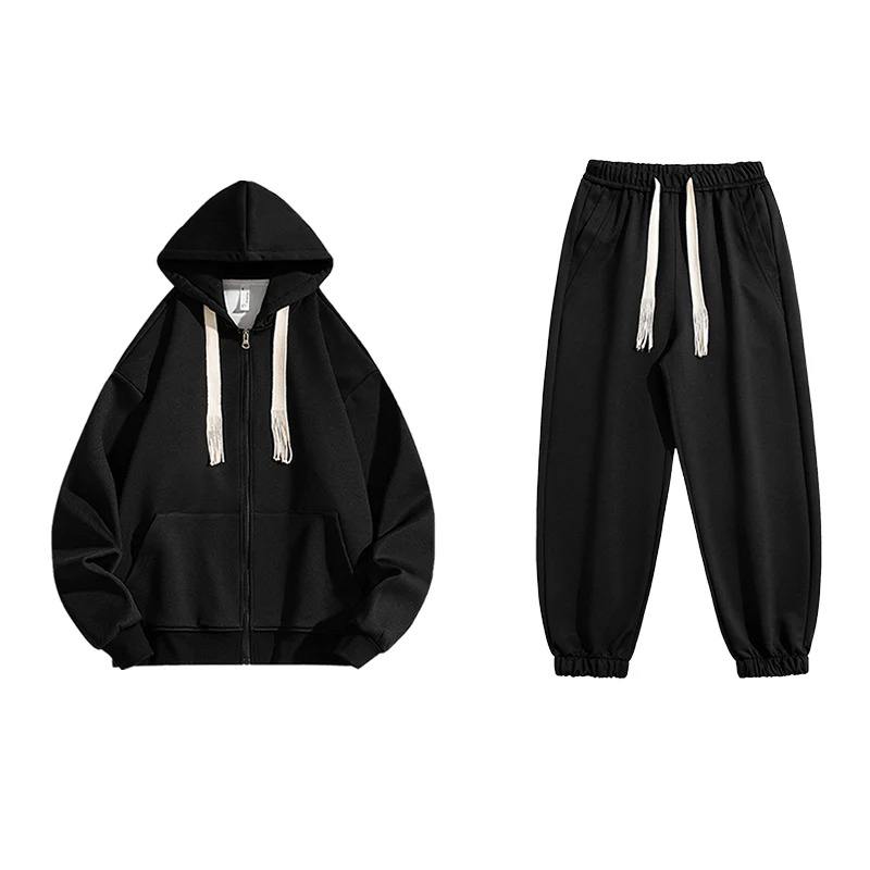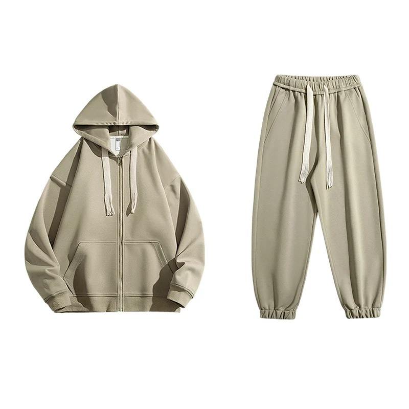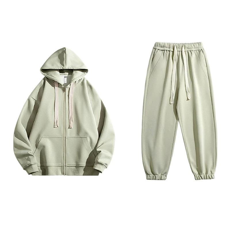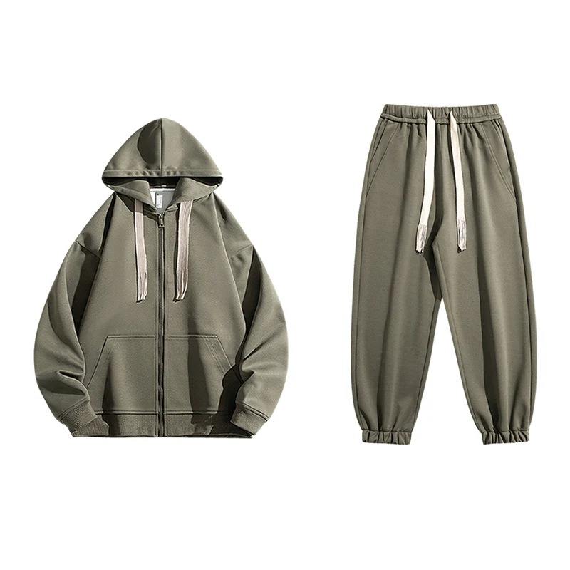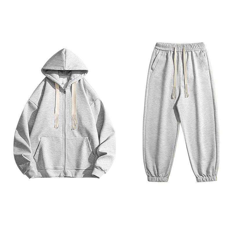 Conjunto Deportivo de Dos Piezas para Parejas, Ropa Deportiva Informal para Correr, Traje de Color Sólido para Hombre y Mujer, Chaqueta con Capucha y Cordón, Pantalones de Moda, 100% Algodón