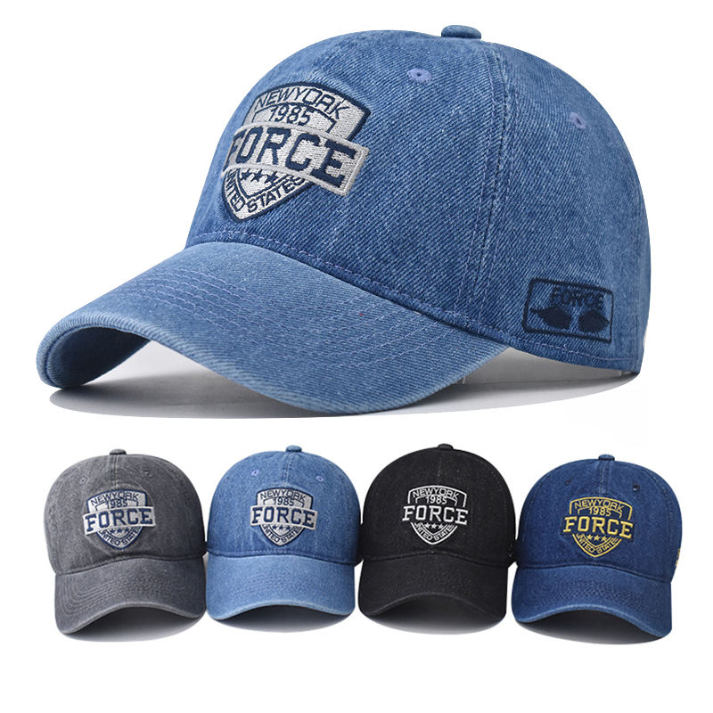 Gorra de béisbol para parejas FORCE letter W-hat Versión coreana Sombrero para el sol Agujero Primavera Otoño Lavado Denim Sombrero de mujer Gorra Hip Hop Gorra ajustada