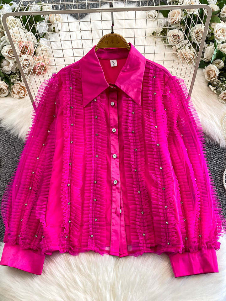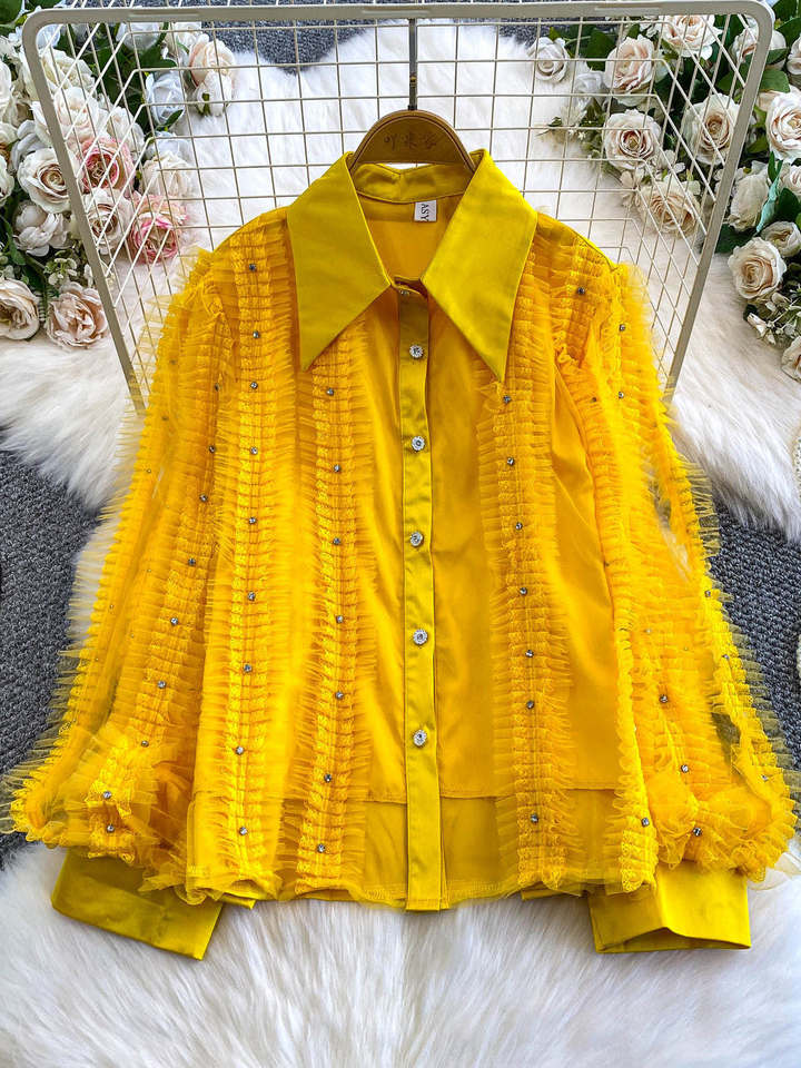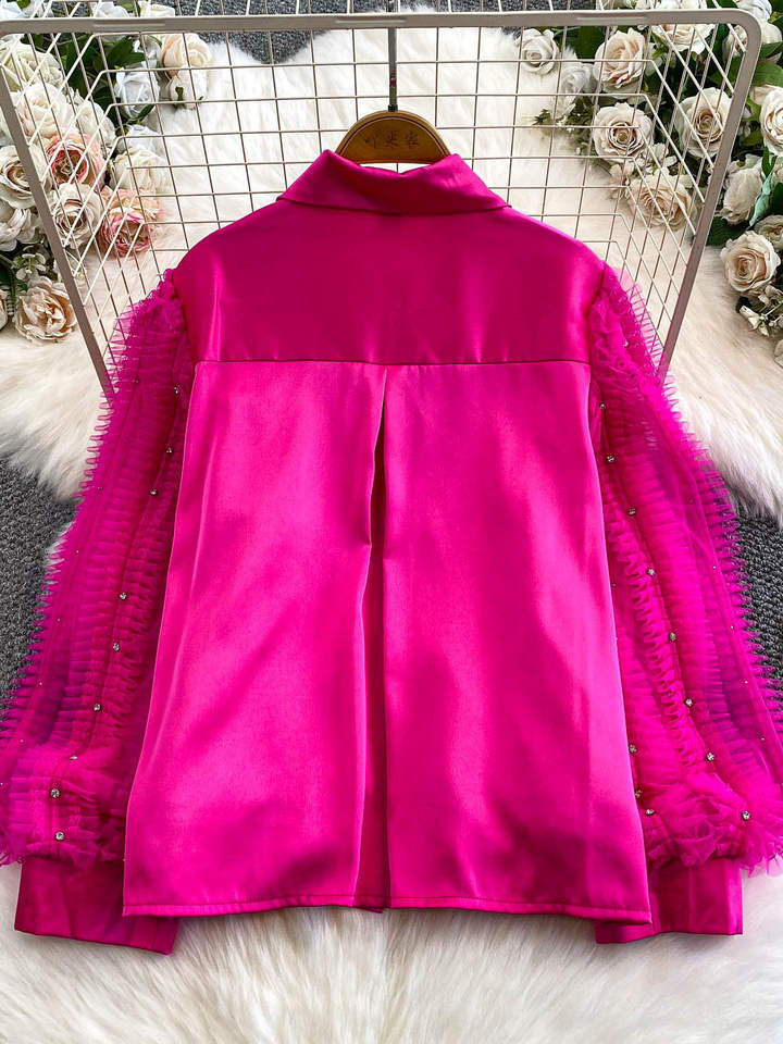 Camisa de Mujer de Invierno, Estilo Corte, con Mangas Campana, Cuello Peter Pan, Ajuste Holgado, Antiarrugas, con Costuras de Gasa de Alta Calidad