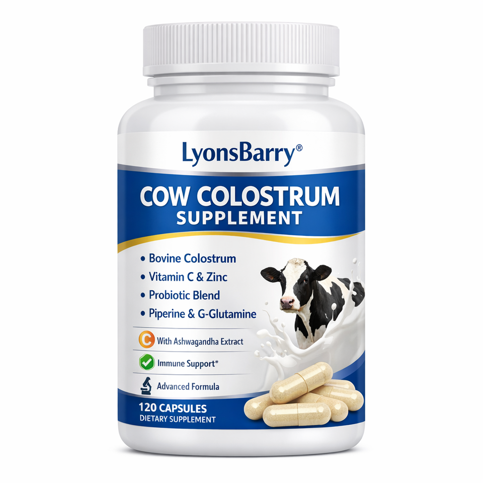 Calostro, Calostro Bovino, Vitamina C, Zinc, Probiótico, Piperina, Extracto de Pimienta Negra, L-Glutamina, Extracto de Ashwagandha