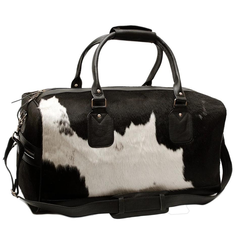 Bolsa de fin de semana con pelo de vaca, bolsa de viaje grande personalizada con estampado de animales de vaca, equipaje de viaje con estampado de animales
