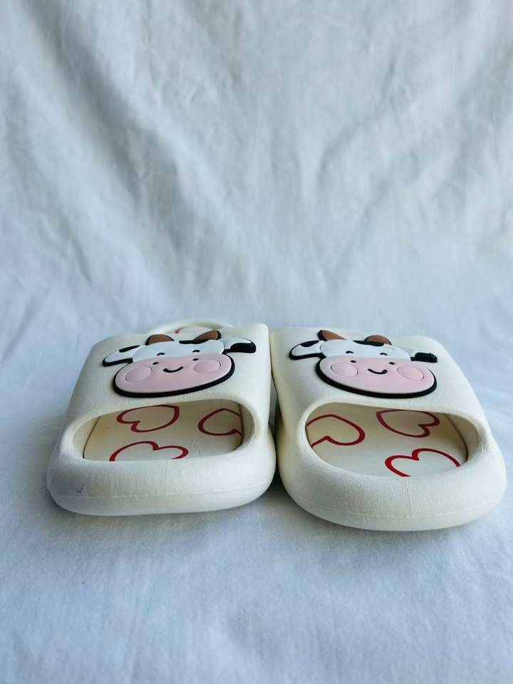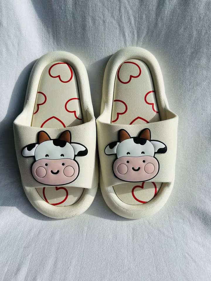Pantuflas con Diseño de Vaca, Punta Abierta, Suela de EVA Color Blanco Hueso, Parte Superior de PU, Para Todas las Estaciones, Uso en el Hogar