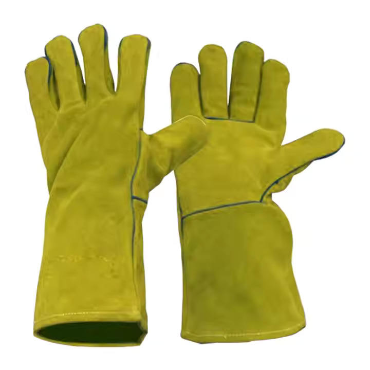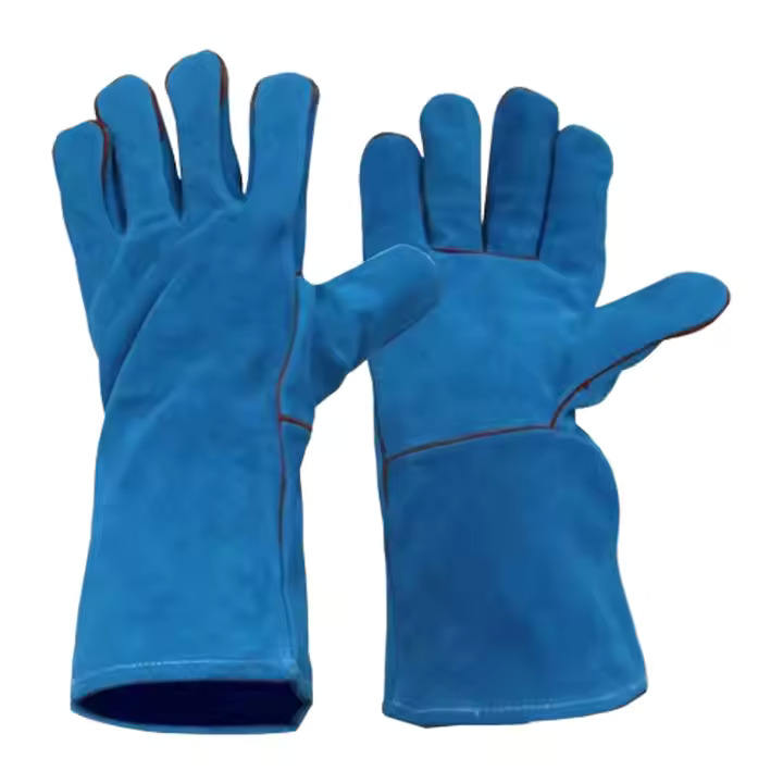 Guantes de cuero protectores de mano dividida de vaca Guantes de trabajo de seguridad de soldadura de cuero Guante de trabajo de cuero azul de alta calidad
