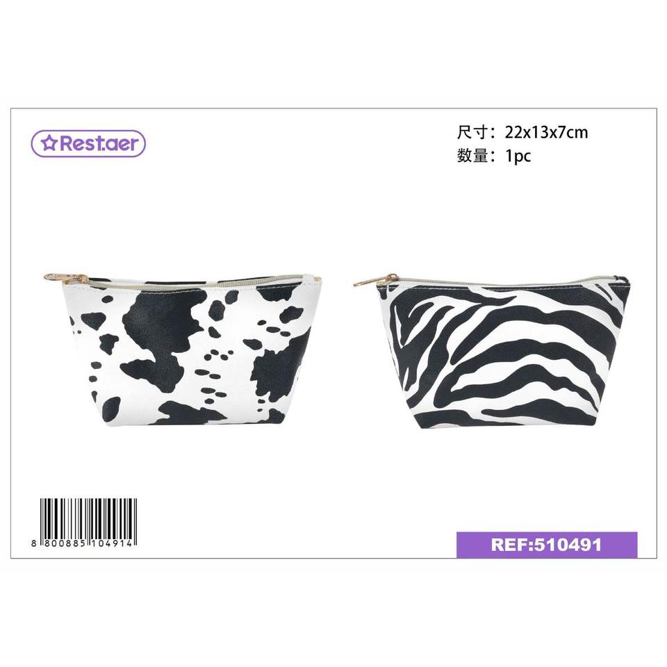 Estuche cosmético portátil duradero con diseño de vaca y cebra, 22x13x7cm, Accesorios de belleza de poliéster con logotipo personalizado