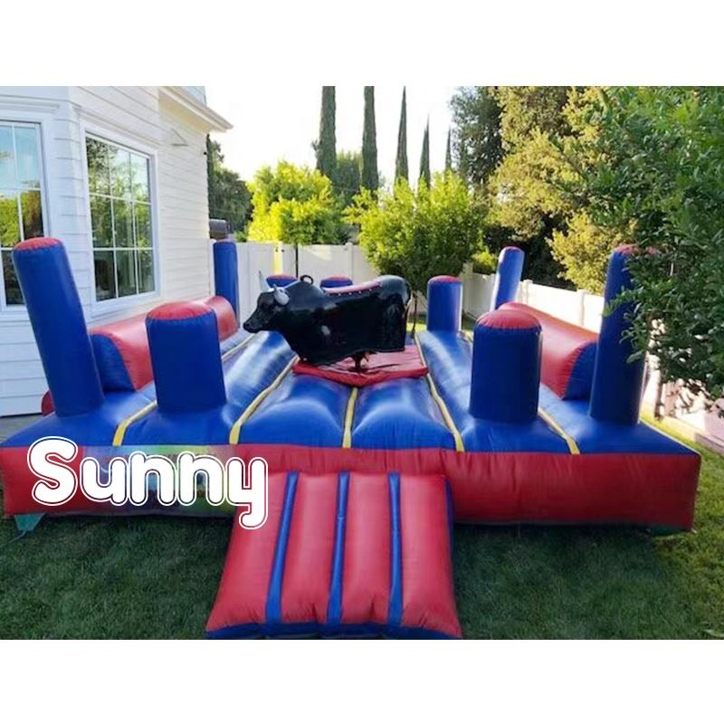 Toro Mecánico Inflable para Desafío de Equilibrio Vaquero, Máquina de Toreo Inflable con Arena para Fiestas de Carnaval
