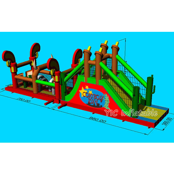 Cowboy Run Large Wild West Inflable Combo Carrera de obstáculos para divertidos alquileres de fiestas y eventos de equipo Blow Adventure Sale