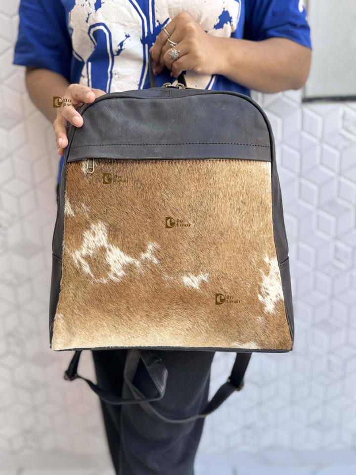 Mochila de piel de vaca con estilo Unisex al por mayor en estilo de moda occidental Forro de cuero genuino Cierre de cremallera Mochila escolar impermeable
