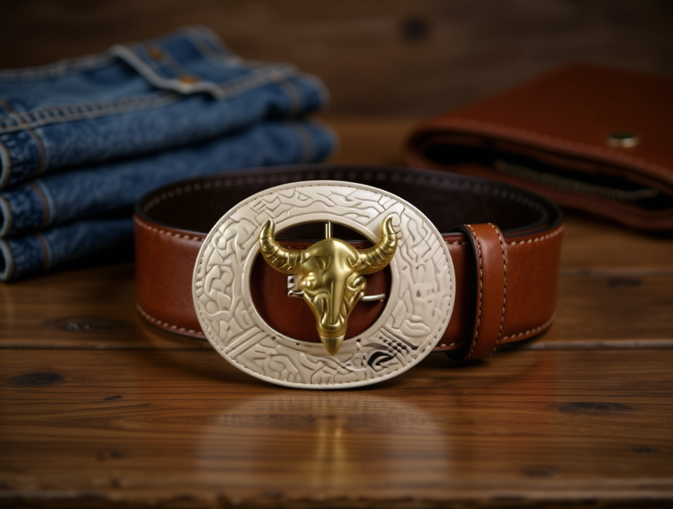 Cinturón de Cuero Vacuno con Hebilla Grande, Diseño Sólido, Estilo Casual, Moldeado en una Sola Pieza