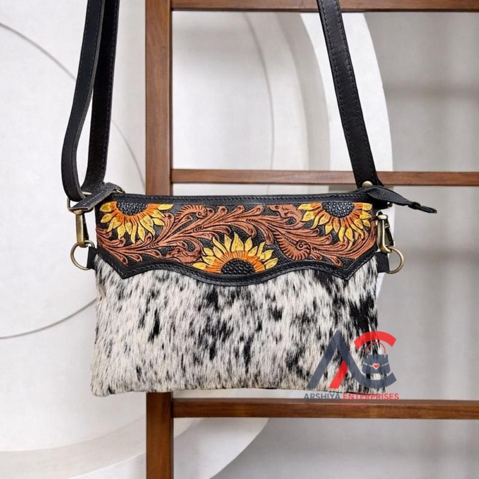 Nombre del producto:Bolso bandolera de cuero repujado con diseño floral