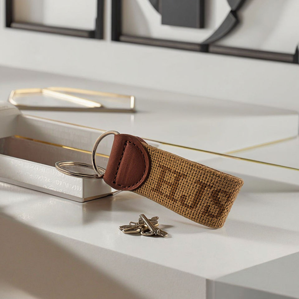 Llaveros de piel de vaca Diseño de punto de aguja personalizado Llavero de cuero genuino Moda personalizable