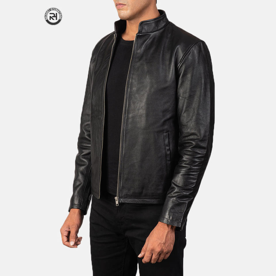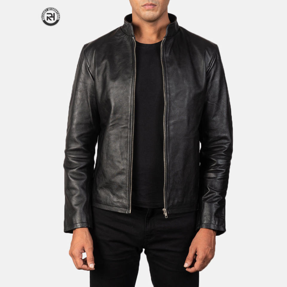 Chaqueta de Cuero Vacuno Negro Azul Marino, Grano Superior, Curtido Cromado, Acabado Semi-Anilina de Lujo, Primavera, Formal, Frente