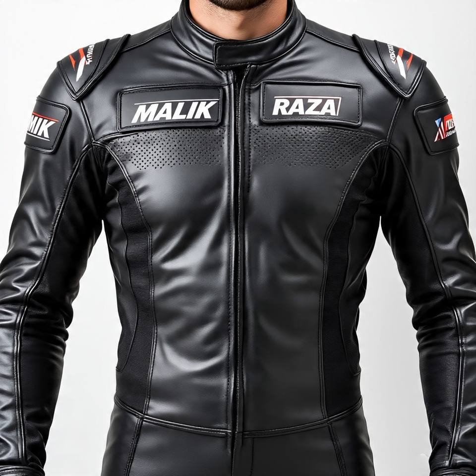 Traje de carreras de motos de cuero de vaca | Malik Raza | Logotipos de tamaños de colores personalizados para clubes | Volumen de precios bajos