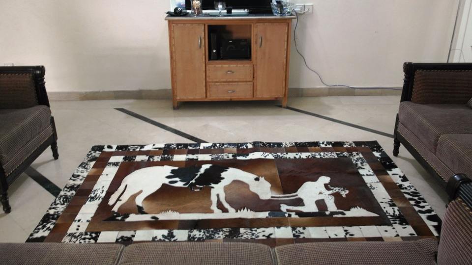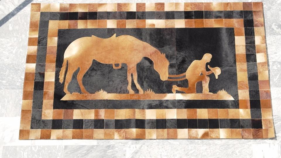 Alfombra de Cuero Vacuno con Diseño de Patchwork
