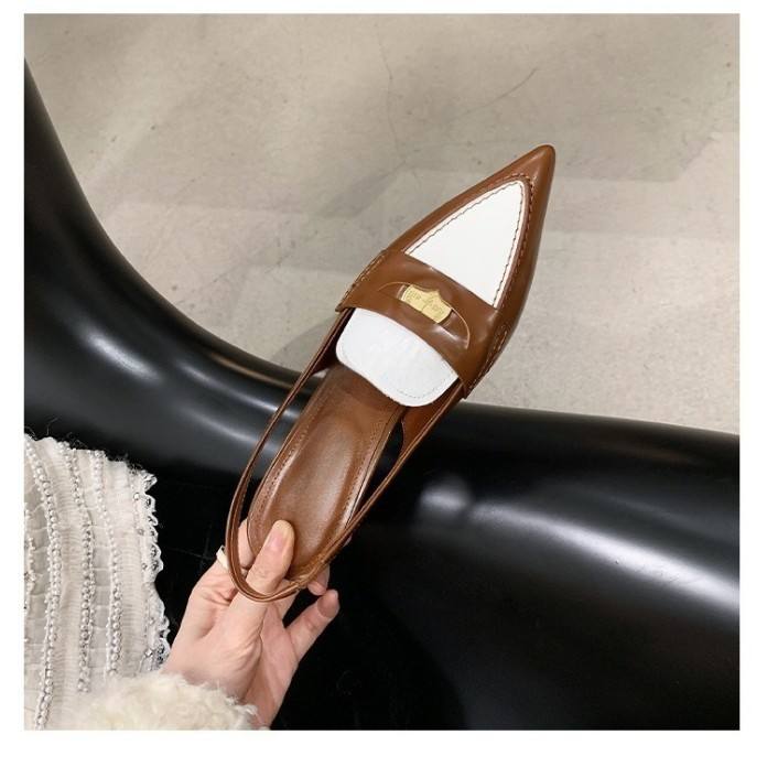 Versión en Piel de Vacuno~Sandalias de Tacón Fino con Punta Puntiaguda y Talón Descubierto al Estilo de Su Yinyin para Mujer, Suela de Goma, Forro de Microfibra