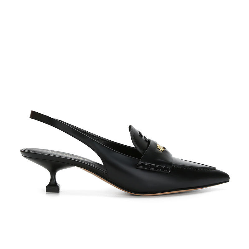 Versión de piel de vaca~Sandalias de mujer con forro de microfibra, estilo Su Yinyin, para todas las estaciones, con punta en forma de moneda dorada pequeña, tacón fino y talón abierto