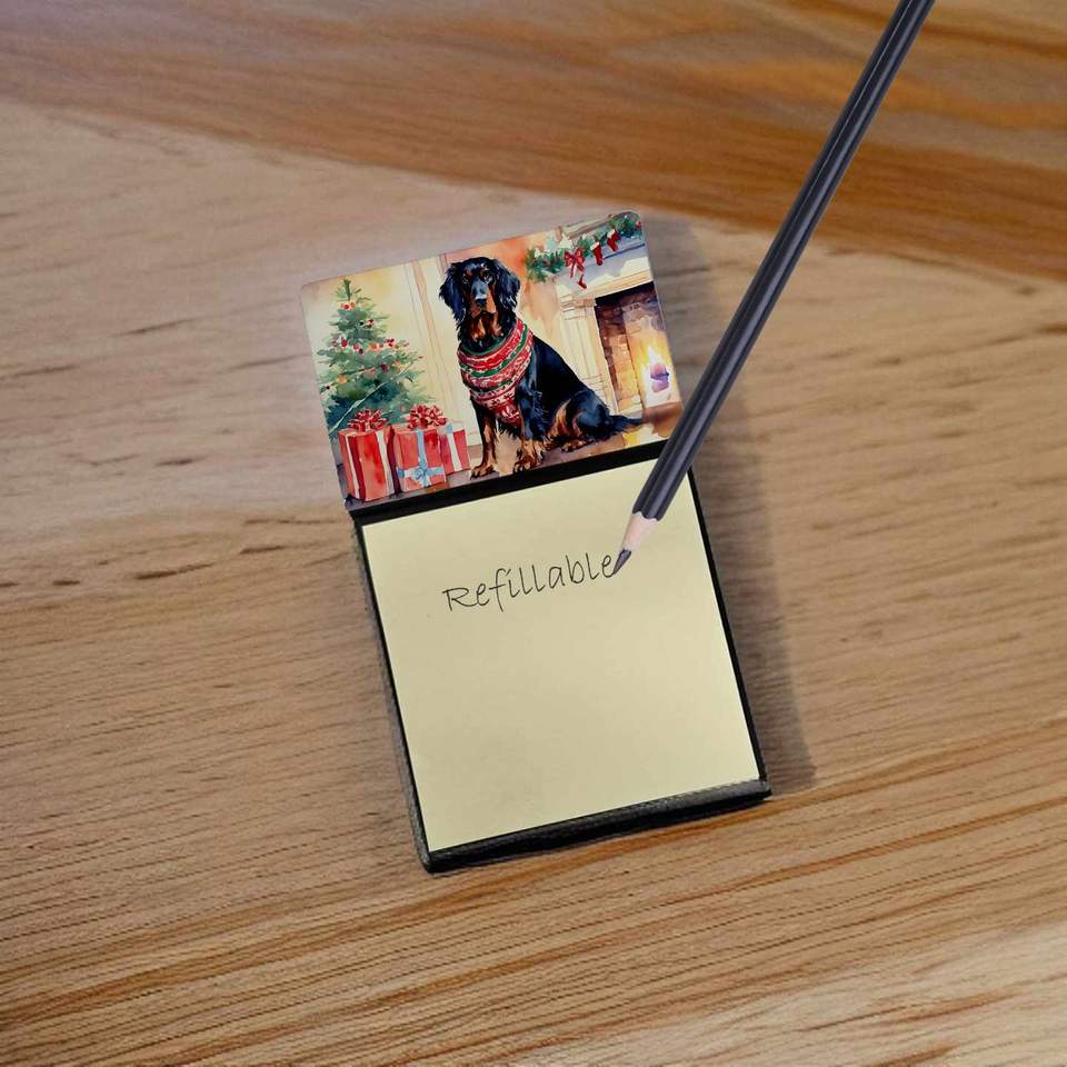 Cozy Christmas Gordon Setter Sticky Note Holder Almohadillas de notas autoadhesivas recargables Bloc de notas Accesorios de escritorio en blanco