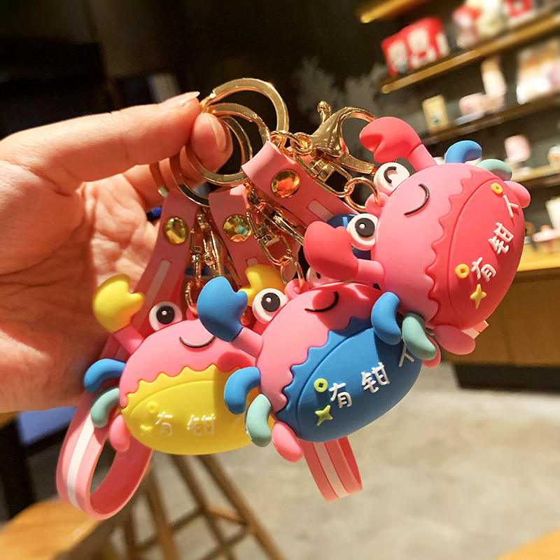 Cangrejo rico hombre dibujos animados 3D estatuilla goma ecológica Aleación de Zinc llavero colgante creativo pequeño regalo ornamento