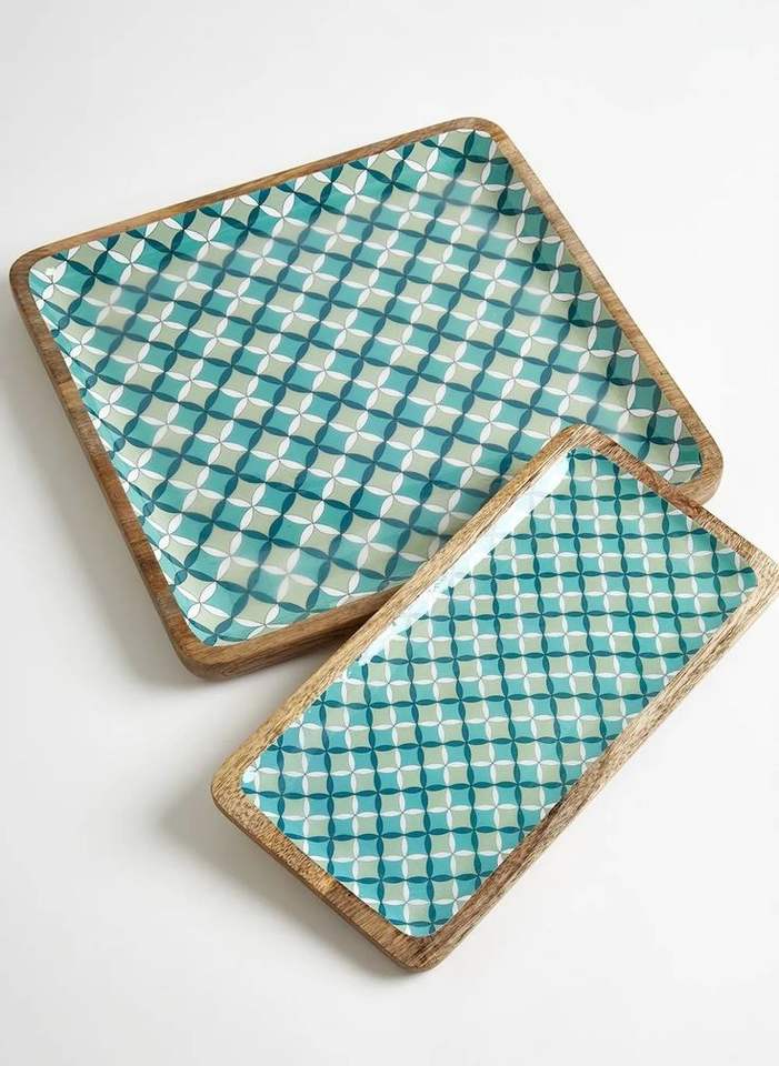 Bandeja de Servicio Artesanal de Madera con Diseño Art Deco y Trabajo Meena, Forma Personalizada para Decoración de Mesa de Comedor, Cocina y Hogar