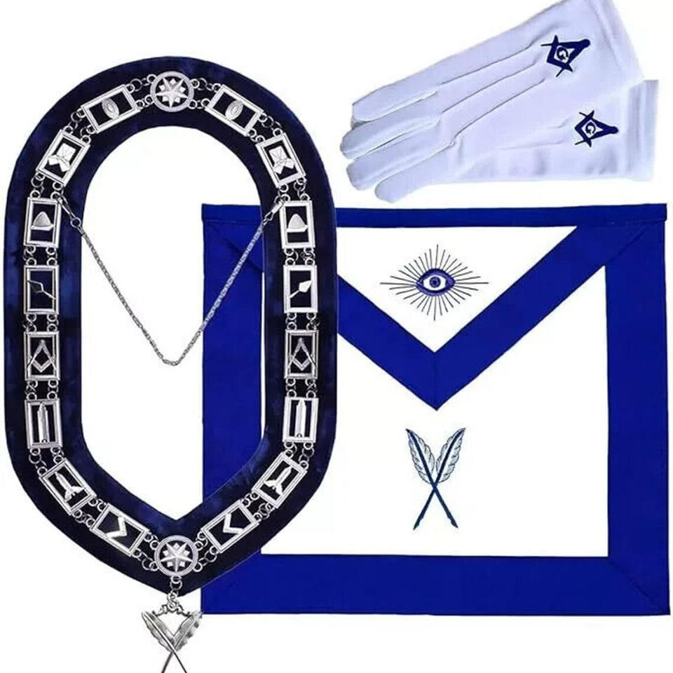 Mandil Masónico Craft Masters, Collar de Oficial, Tela de Cinta de Algodón de la Mejor Calidad, Diseño Bordado, Uso Masónico