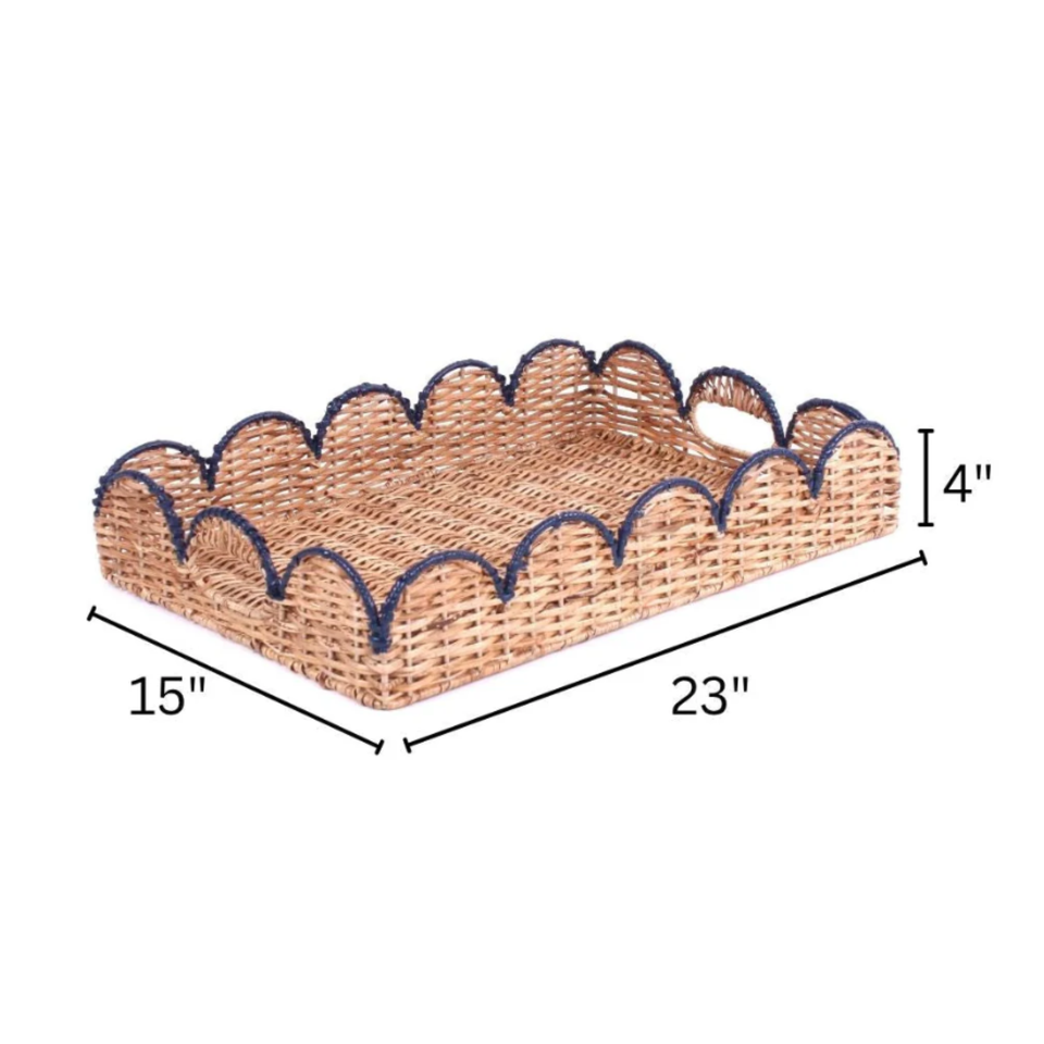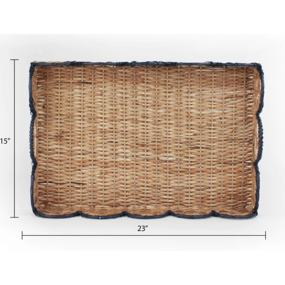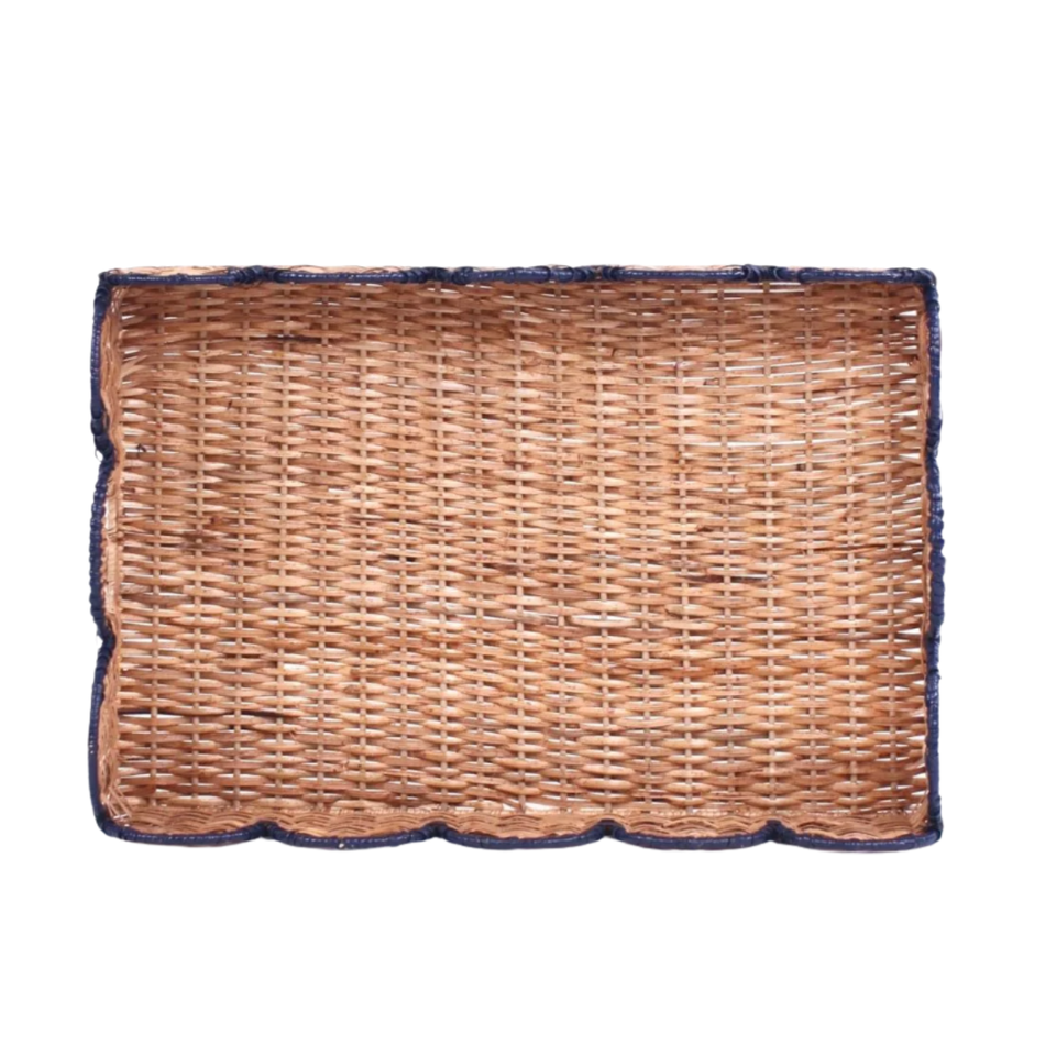 Bandeja de ratán natural vietnamita con borde festoneado, ideal para mesa de centro y decoración del hogar.