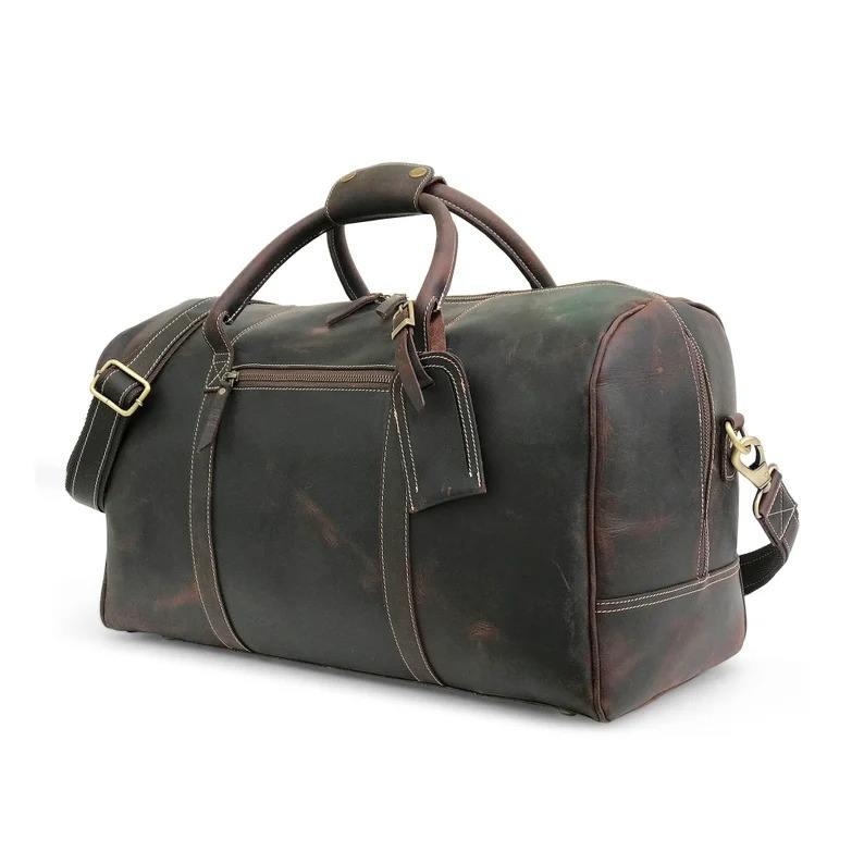 Bolsa de Viaje de Cuero Genuino, Estilo Retro, para Fin de Semana, para Hombre y Mujer, Gran Capacidad, Portátil, Ligera, Equipaje de Cabina