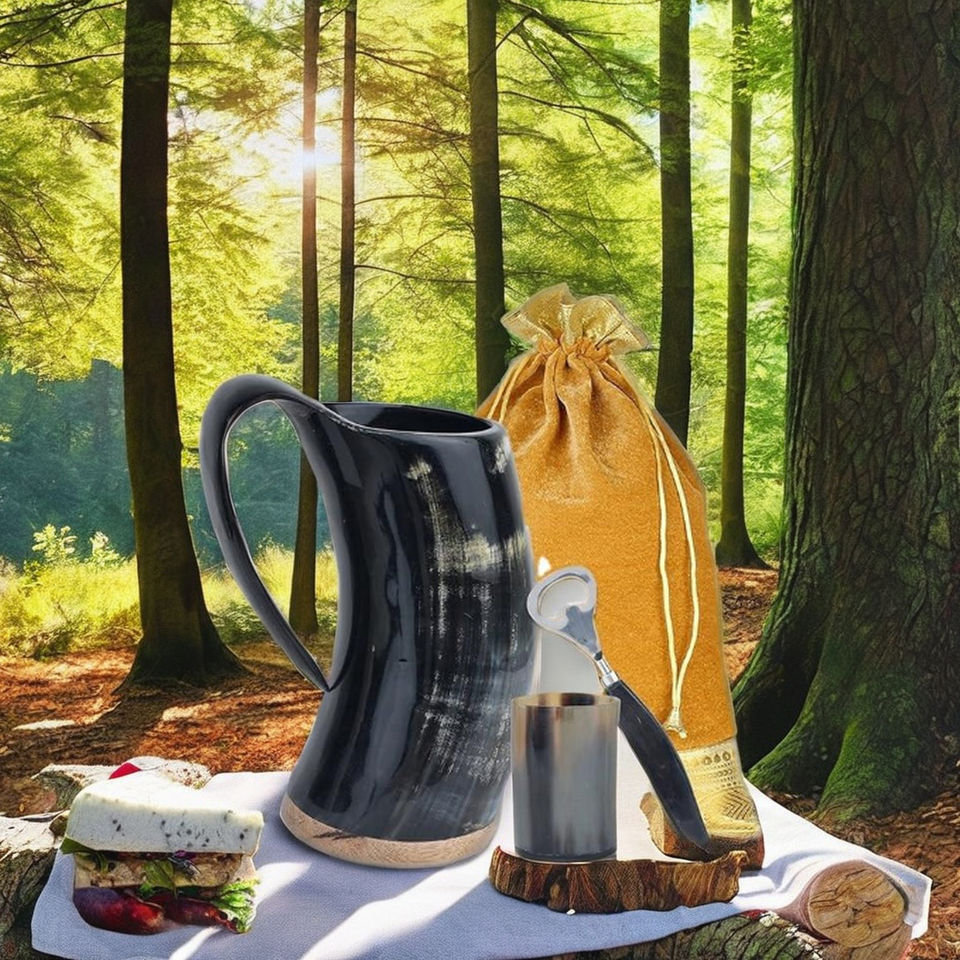 Jarra de Cuerno de Búfalo Hecha a Mano de 12 Pulgadas, Ecológica, Natural, Estilo Medieval Vikingo, Acabado de Grado Alimenticio, CRAFT SHUB, Venta al Por Mayor