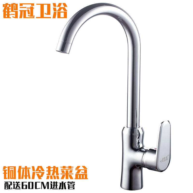 Grifo de cocina Crane Crown, grifo mezclador de cobre con una sola manija, giratorio 360 grados, montado en el encimera, para fregadero