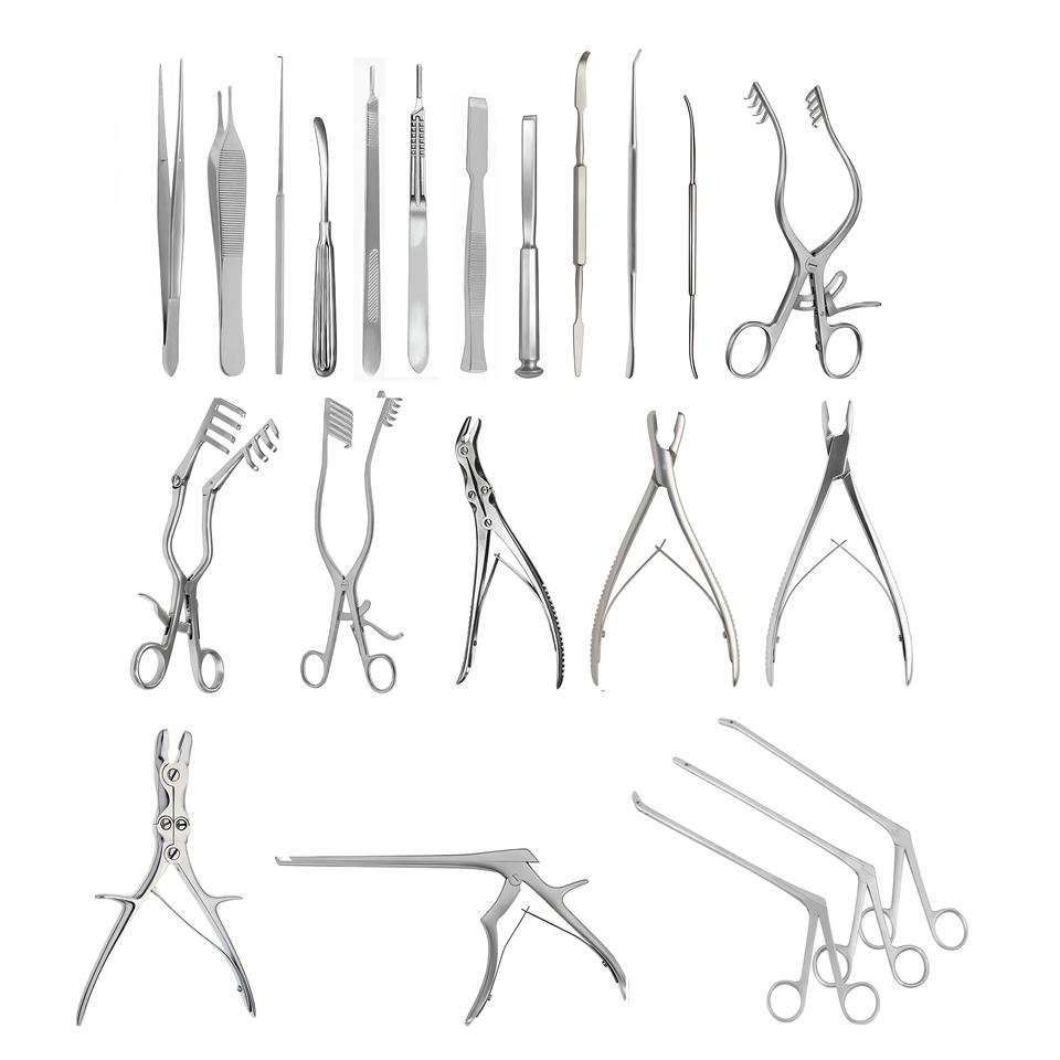 Instrumentos Neuroquirúrgicos para Craneotomía, para la Extracción de Piezas Óseas del Cráneo, Juego de 86 Piezas